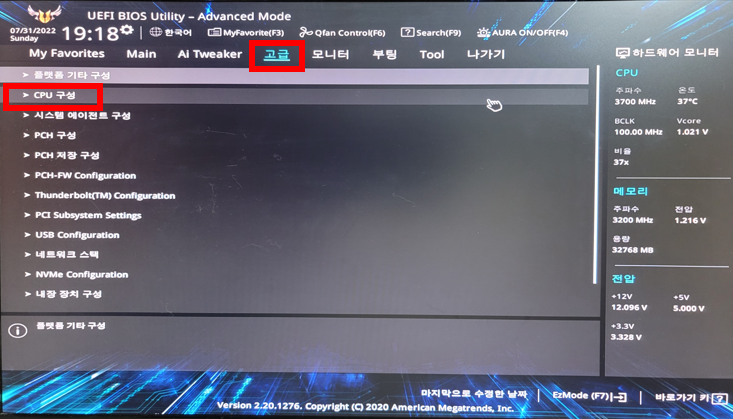 메인보드 업체가 서로 달라도 우리가 조작해야할 메뉴는 통상 Virtualization(가상화) 이라는 용어가 들어가 있습니다.
